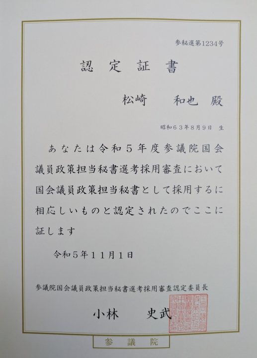 2015年 公設秘書(2015~2019公設第二秘書、2019~2025公設第一秘書)